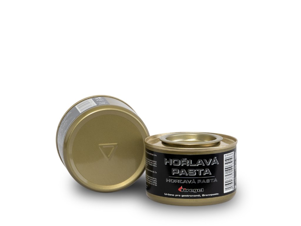 Plechovka jako hořák pro gastronomii: Funkční plechovka s 200g hořlavé pasty slouží zároveň jako nádoba i hořák – okamžitě připravena k použití v restauracích.